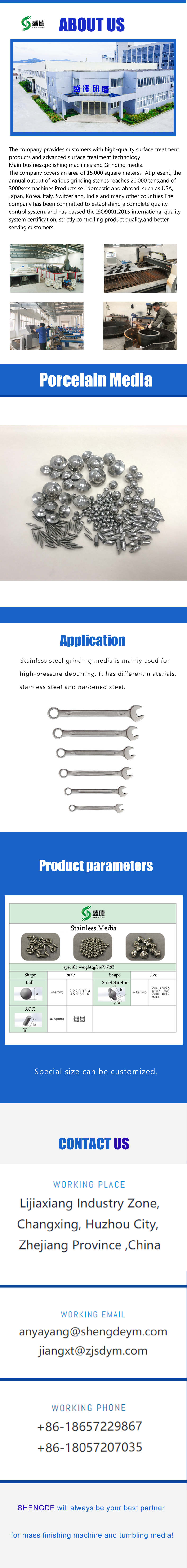 Stainless steel grinding media is mainly used for high-pressure deburring. It has different materials, stainless steel and hardened steel.